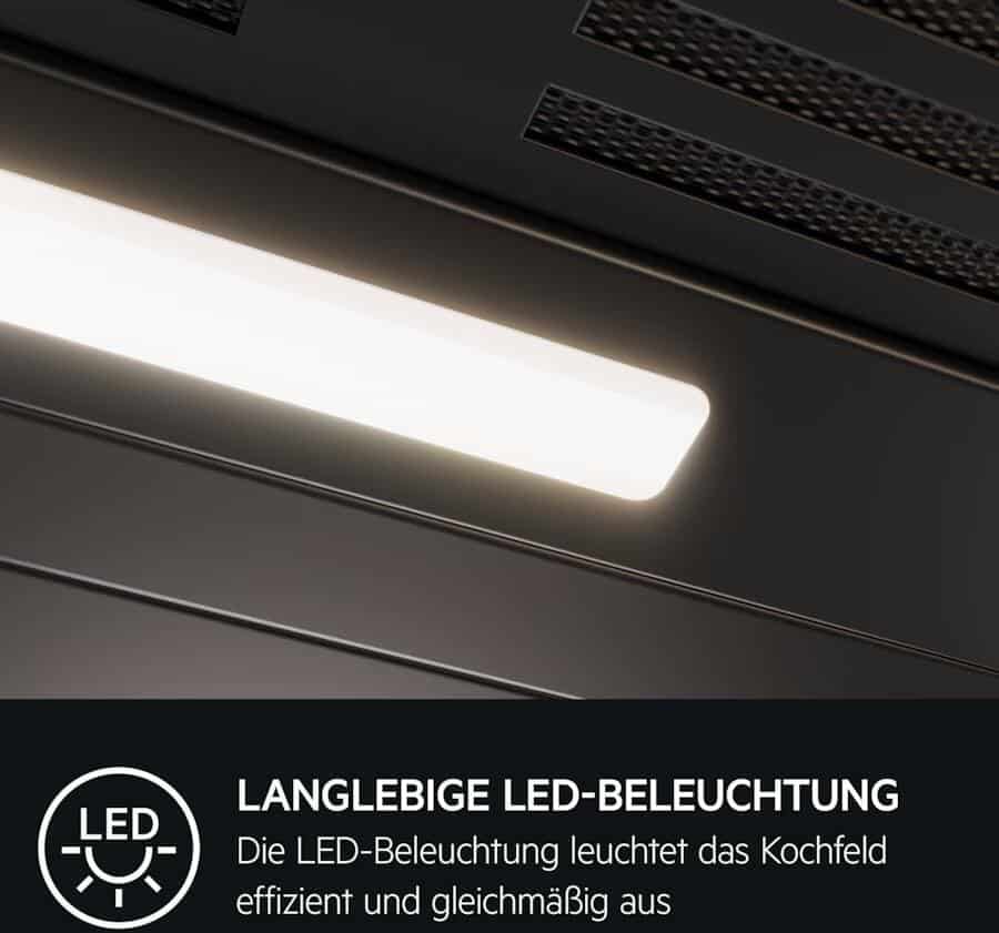 Osvetlenie Pure Illumination LED poskytuje skvelý prehľad nad varnou plochou. Dve LED lampy svietia príjemnou teplou bielou 3000 K a dosahujú svetelnú účinnosť 39,7 lx/W, takže uvidíte každý detail s minimálnou spotrebou energie.