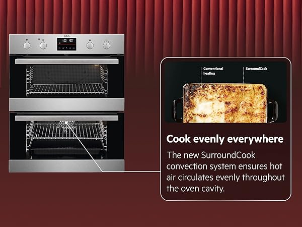 Vstavaná dvojitá elektrická rúra AEG DUB535060M prináša maximálnu flexibilitu pri varení, rovnomerné pečenie vďaka technológii SurroundCook a elegantné vyhotovenie v nerezovej oceli s úpravou proti odtlačkom. Dve samostatné dutiny s objemom 45 l a 42 l umožnia piecť naraz rôzne jedlá bez miešania vôní a s presným dohľadom nad výsledkom.