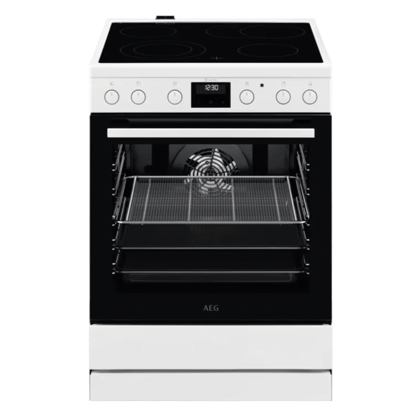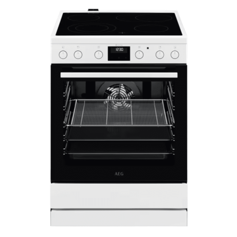 Elektrický sporák AEG CCB6440CBW prináša do kuchyne sklokeramickú varnú dosku pre rýchle zahriatie, priestrannú rúru s viacúrovňovým pečením a praktický časovač s LED displejom. Špeciálne nastavenie a príslušenstvo umožňujú chrumkavé pečenie s AirFry s minimom oleja, zatiaľ čo konštrukcia v bielom prevedení sa ľahko zladí s akýmkoľvek interiérom.