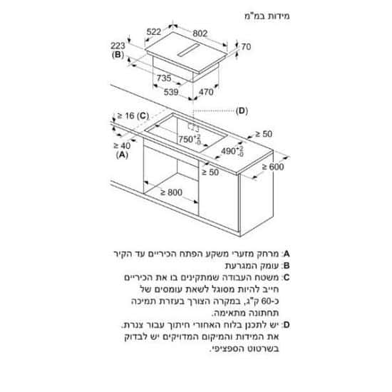 • Rozmery spotrebiča: 223 x 802 x 522 mm