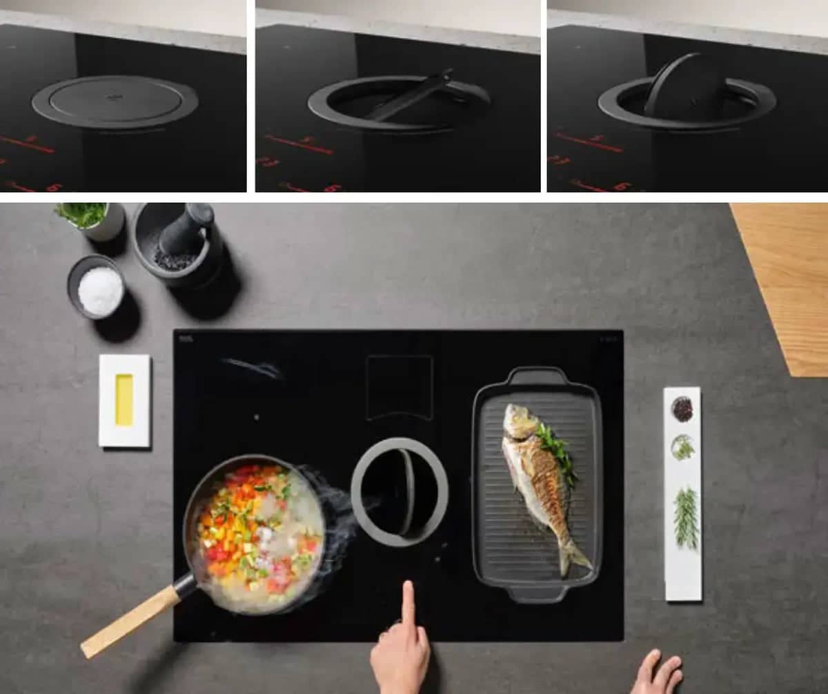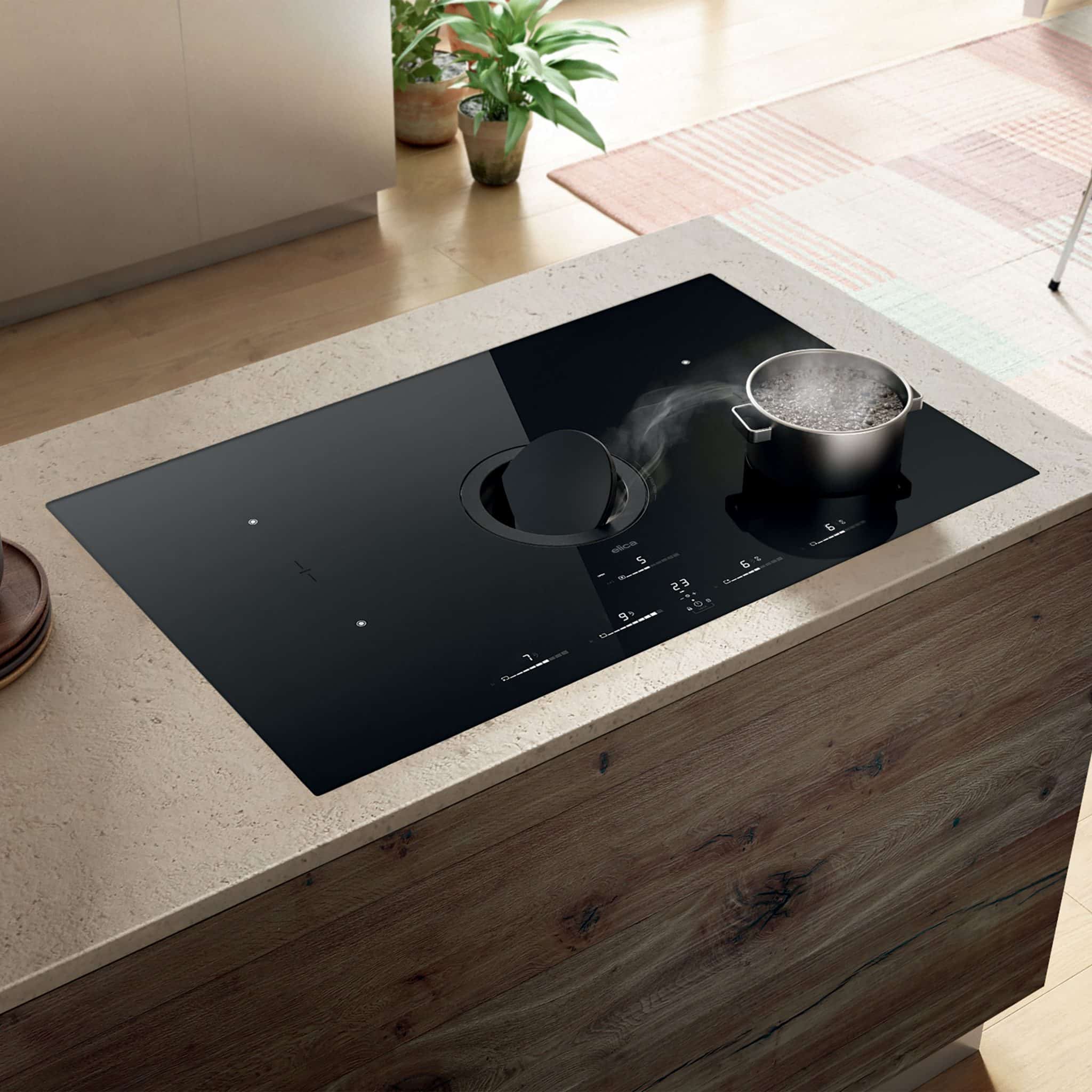 Indukčný varný panel so vstavaným odsávačom spája varenie a odvádzanie pár priamo v strede varnej plochy, aby bola kuchyňa vždy svieža a prehľadná. Čisté čierne sklo a diskrétne červené indikátory pôsobia elegantne v akejkoľvek modernej linke, pričom návrh pochádza od dizajnéra Fabrizio Crisà. Ovládací panel je intuitívny a nenápadný, takže si užijete bezproblémovú údržbu aj každodenný komfort. Tento model je ideálny pre modernú kuchyňu s nárokmi na výkon a estetiku.